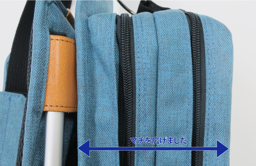 「子供のおやつや飲み物などもう少し荷物を入れられたら…」という声にお応えして、マチを広げて荷物の収容量がアップしました。 |