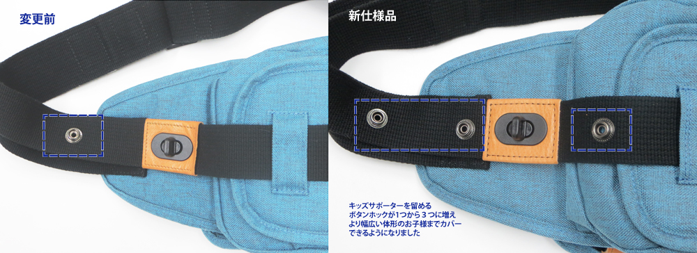 キッズサポーターのボタンホックを、1つから3つに増やしました。 |